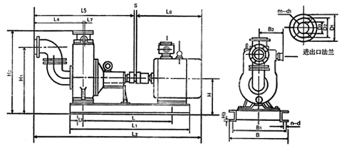 | 泵型號 | 電動機(jī) | L | L1 | L2 | L3 | L4 | L5 | L6 | L7 | δ | H | H1 | H2 | H3 | B | B1 | B2 | n-d | D1 | D2 | D3 | n1-d1 | |||||