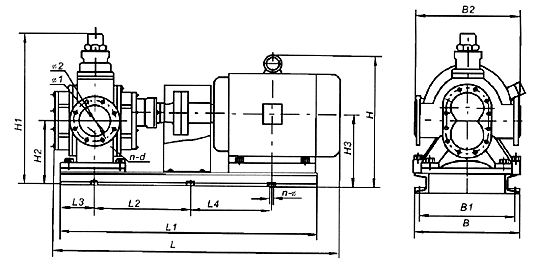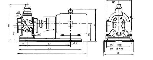 | 型號(hào) | L | L1 | L2 | B1 | B2 | B3 | H | H1 | H2 | φ1 | φ2 | φ3 | n-d | φD | 4-φd |