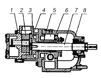 1.前蓋 2.內(nèi)轉(zhuǎn)子 3.泵體 4.外轉(zhuǎn)子 5.滑動軸承或滾動軸承 6.填料密封或機(jī)械密封 7.主軸 8.托架 |
