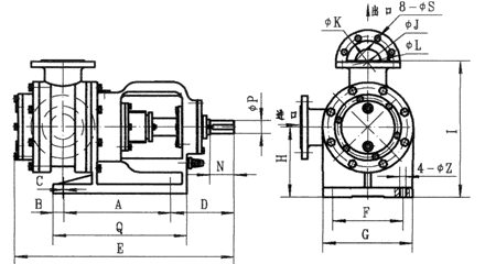 從主軸外伸端向泵看,為順時針旋轉(zhuǎn)。