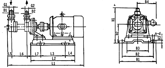 | 泵型號 | 機(jī)座號 | L1 | L2 | L3 | L4 | L5 | L6 | L7 | B1 | B2 | B3 | B4 | H1 | H2 | H3 | n-d | D1×G1 | D2×G2 |