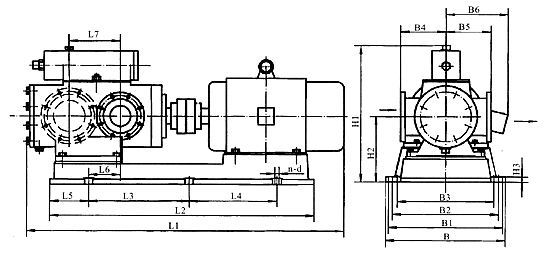 | 泵型號 | 機(jī)座號 | L1 | L2 | L3 | L4 | L5 | L6 | L7 | B1 | B2 | B3 | B4 | B5 | B6 | B7 | H1 | H2 | H3 | n-d |
