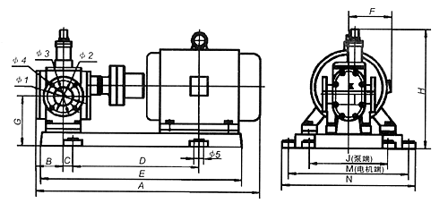 YCB圓弧齒輪泵外形及安裝尺寸